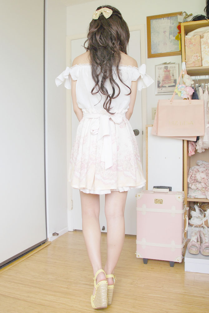 with Liz Lisa off shoulder ribbon blouse and Liz Lisa ribbon pumps -