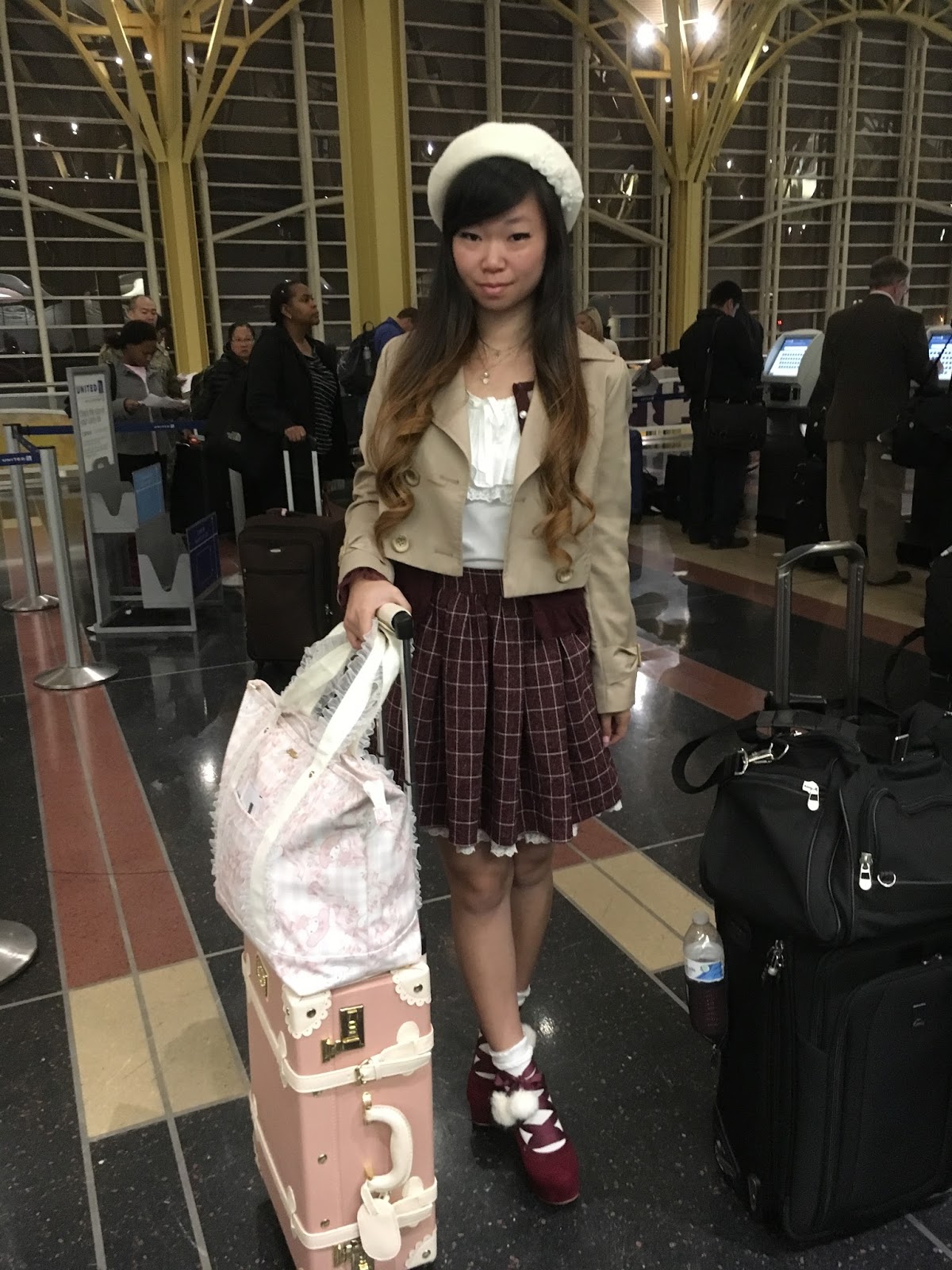 It was so nice to finally land in DC about 13-14 hours after leaving Hawaii wtf. I changed into my Liz Lisa lace up pom pom pumps in Houston so I would have close toed shoes ready for the colder weather lol. I had also taken out a portion of my coat from the suitcase and had it ready in the tote when we finally left the airport.