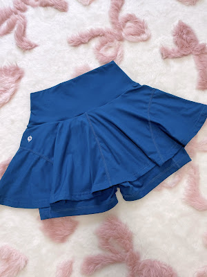 Having been satisfied with the black version, given the opportunity, I decided to grab another but in what I now recognize as my preferred size (XS). All of the alternate colors are super cute so I had a difficult time deciding, but in the end picked cerulean to match with the running hat (below). I do anticipate mainly using the skorts for running (bc that's just the majority of the type of exercise I do), but this color also seemed a bit akin to denim (and pops nicely against white as seen in the stock photos) which was another plus for me to possibly wearing it more casually.
