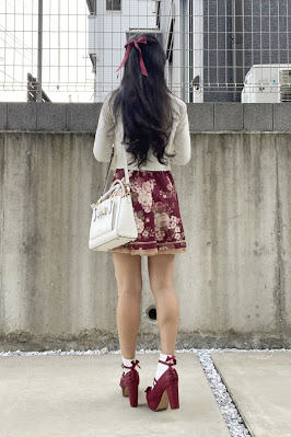 Outfit 10 (for work) - Liz Lisa floral ribbon OP, Liz Lisa cardigan, Liz Lisa 3 strap pumps and Samantha Vega bijou ribbon purse