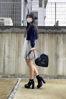 Outfit 14 (for Nikko weekend trip) - Liz Lisa x Yui Kanno collab fairy story OP, MercuryDuo cropped denim jacket, MercuryDuo chunky heel boots, Samantha Vega bijou ribbon purse