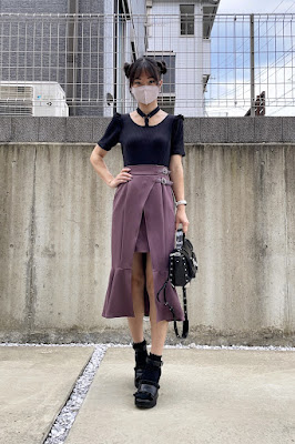 Outfit 4 (for work) - EATME asymmetry hem tight OP, EATME cross harness belt, EATME chunky heel pumps, Dr Martens heart purse